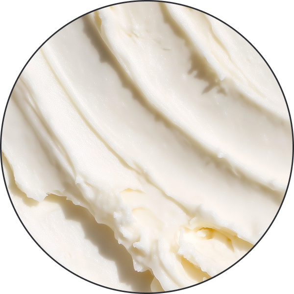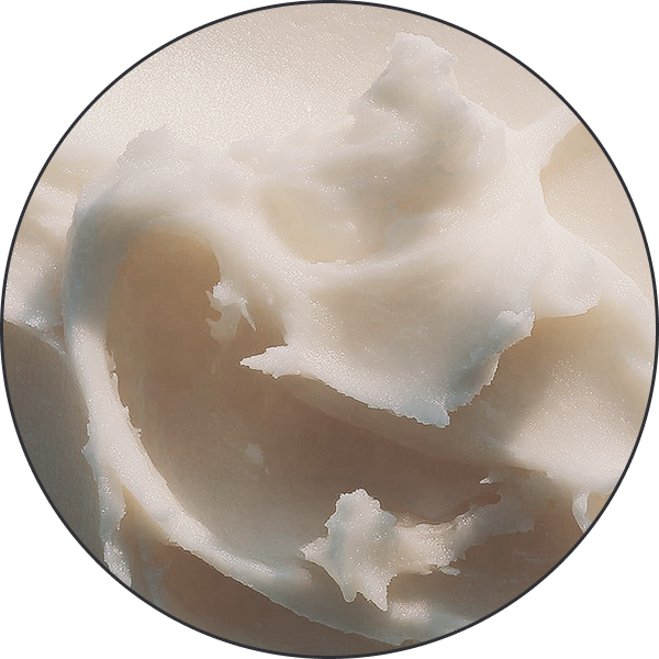 Shea butter is known for its high antioxidant content, including vitamins A and E, which may contribute to protecting the skin from environmental damage. Its fatty acids are recognized for providing deep moisturization, potentially strengthening the skin barrier and soothing irritation.